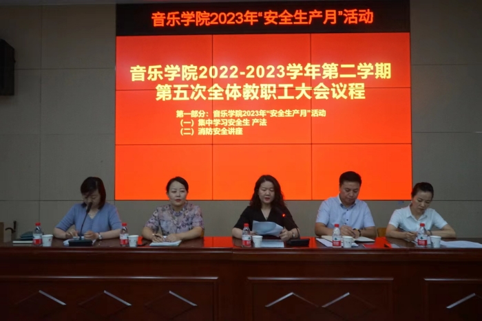 6月28日下午,音乐学院召开安全生产月宣讲大会,围绕“人人讲安全、个个会应急”主题开展系列宣传教育,加强全体教职工关于安全生产的意识。 院长杨艺媛、党总支书记贺星、副院长史海静分别领学《国务院安委会安全生...
