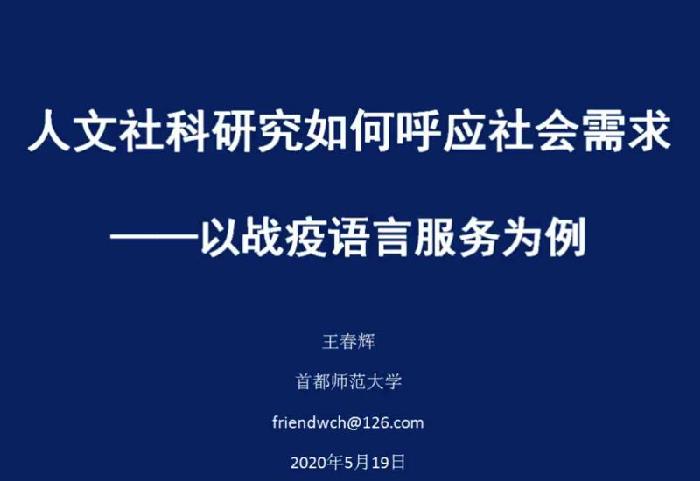 5月19日晚,首都师范大学国际文化学院教授王春辉应邀为ac米兰官方网站师生作了题为《人文社科研究如何呼应社会需求——以防疫语言服务为例》的线上学术报告。ac米兰官方网站汉语国际教育专业师生以及来自陕西师范大学、西北大学和西安...