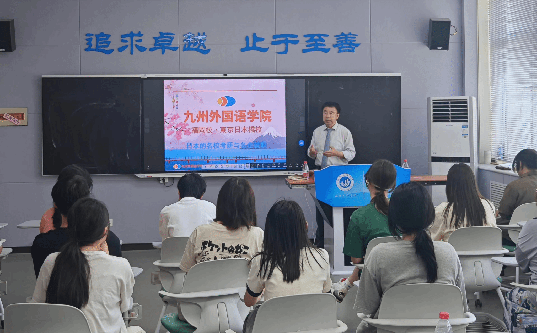 5月21日下午,日本九州外国语学院理事长马越雪夫一行来ac米兰官网外国语学院进行访问交流,就外国语学院学生赴日留学、考研和毕业生就业等项目合作进行宣讲。外国语学院院长韩红建、副院长邹维以及日语系副主任张利热情接待了马越雪夫理事长一行,并参加了此次会谈。韩红建院长代表外国语学院对马越雪夫理事长的到来表示热烈的欢迎,并介绍了外国语学院的发展情况,以及对外交流合作的情况,提出了对于发展外国语学院对外交流的期许,希望能够加强进一步合作,...