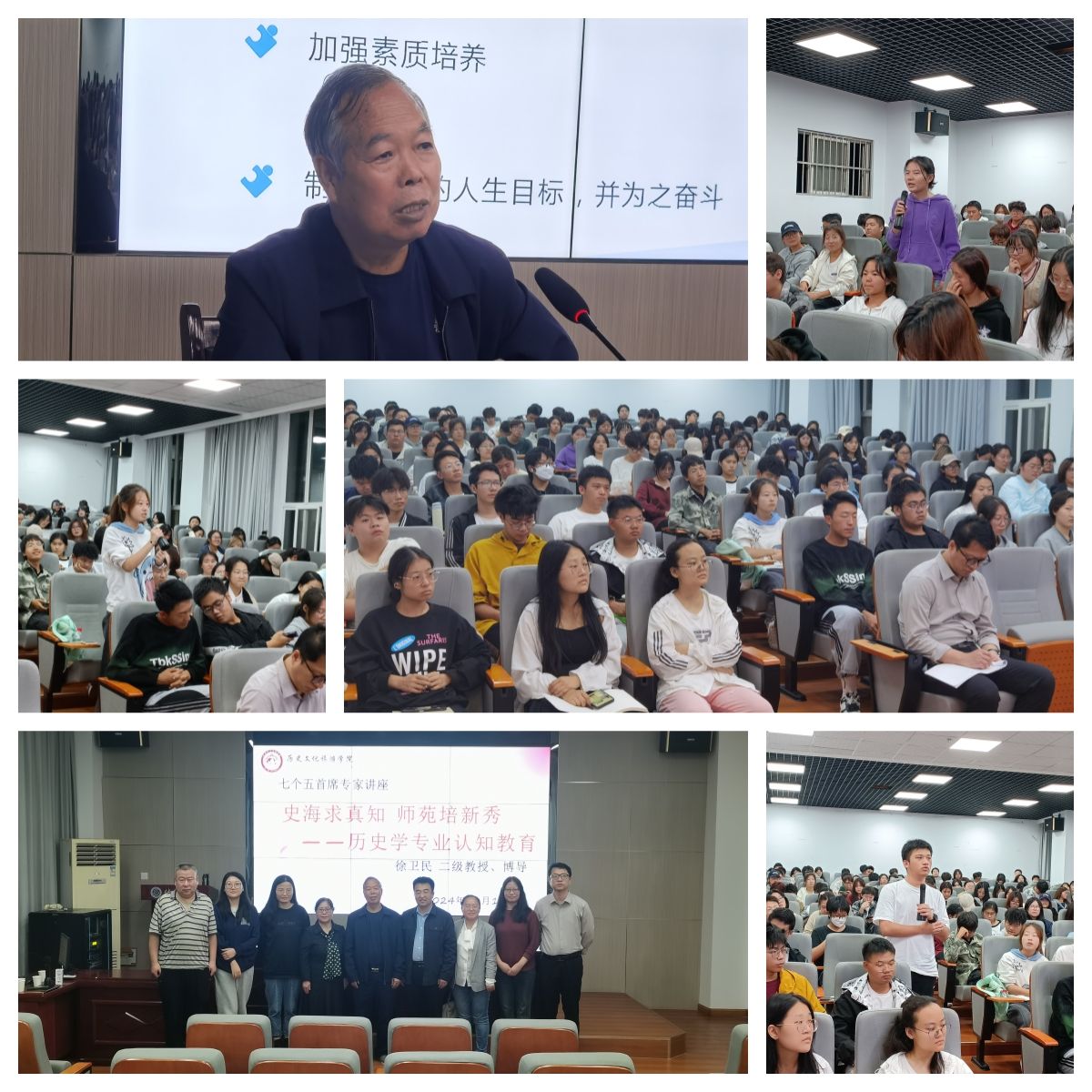 10月18日晚,历史文化旅游学院历史学专业特邀西北大学二级教授徐卫民,为师范生作了题为“史海求真知 师苑培新秀”的专业认知教育专题讲座。党总支书记李东升及历史学专业师生130余人到场聆听。讲座开始前,李东升代表学院对徐卫民教授的到来表示热烈欢迎,感谢他为师范生进行专业认知教育,以及对历史学专业发展和学院工作的大力支持。在讲座中,徐卫民教授基于国内外师范教育的发展简史,阐述了师范教育的重要性及师范学校历史学专业设立的意义。...