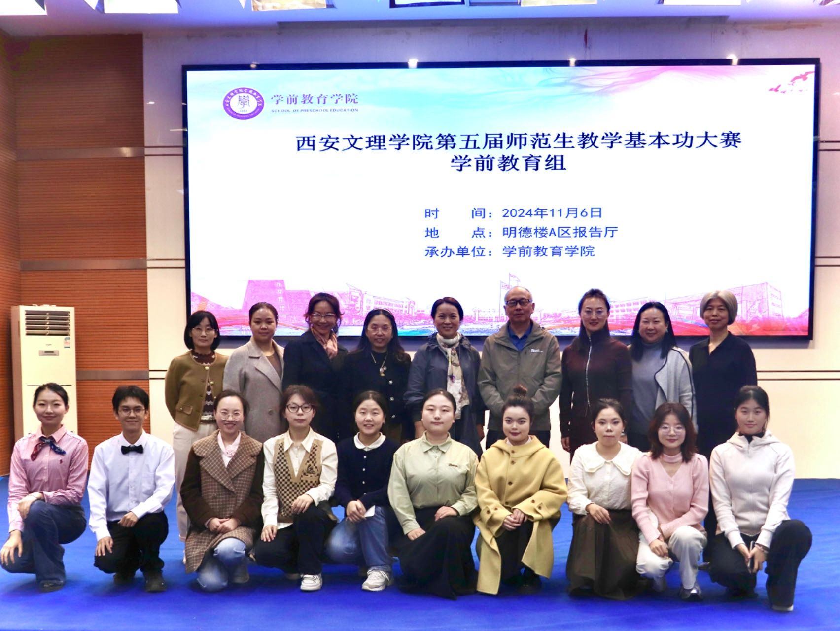 近日,学前教育学院举办ac米兰官网第五届师范生教学基本功大赛(学前教育组)。本次大赛特邀西安市教育科学研究院教研员姜西润,西安航天城第三幼儿园园长白娜,ac米兰官网前教育学院副教授李新舟、副教授李红雨、课程教学部教师师淑彦担任评委。学前教育学院党总支书记刘爱霞、党总支委员雷巧娟及学院专任教师代表出席本次活动。比赛分为A、B两组进行。A组项目包括儿童故事讲述、幼儿歌曲弹唱、幼儿舞蹈表演、幼儿简笔画及粉笔字书写四项。B组项目包括教学活动设计与课件制作、...