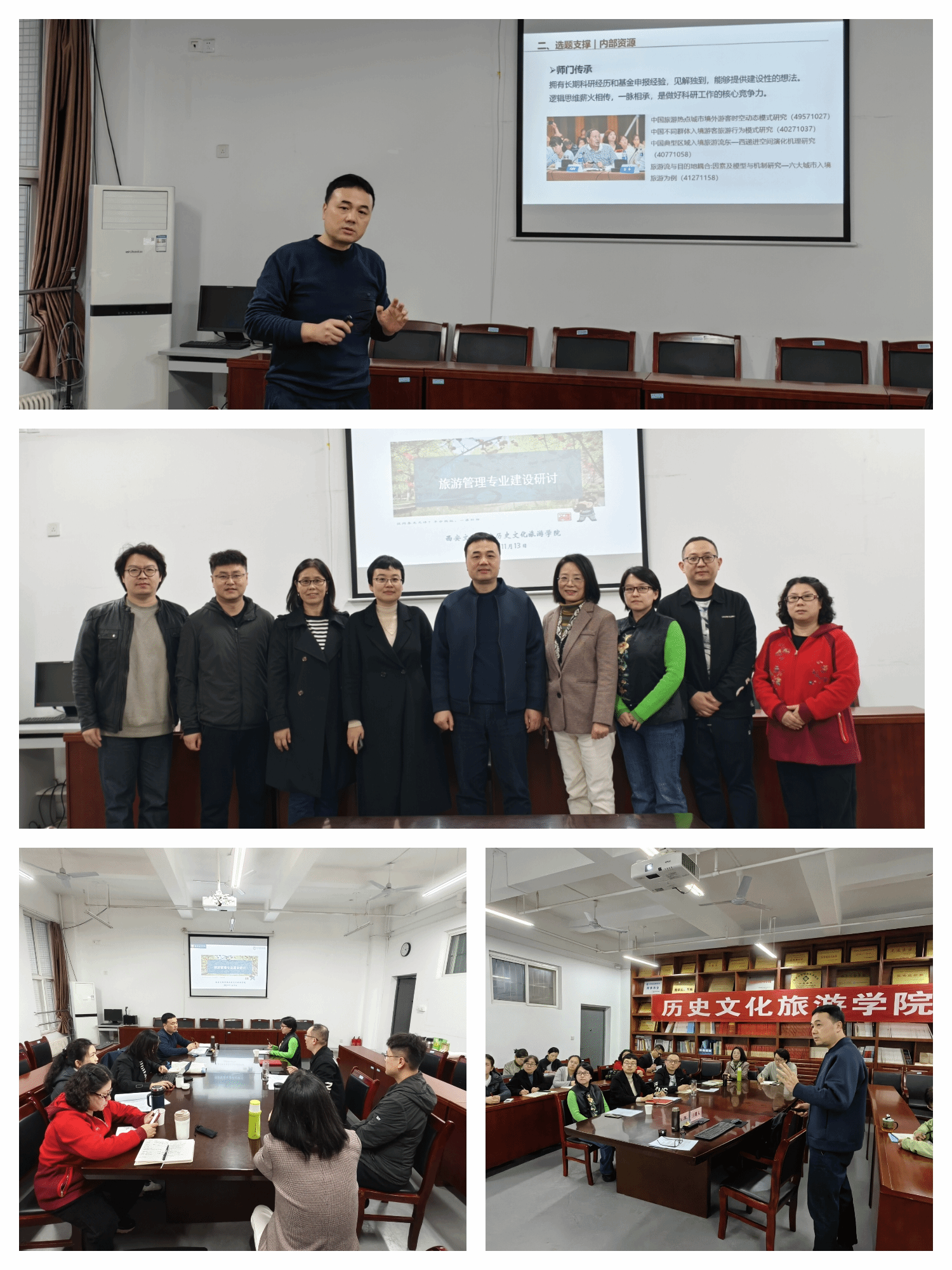 11月13日下午,历史文化旅游学院邀请陕西师范大学地理科学与旅游学院教授、博士生导师、教育部MTA教指委委员白凯教授,与学院教师开展国家基金申报并进行旅游管理专业建设研讨。本次研讨会首先围绕“基金申报中的科学问题辨识与问题意识培养”这一主题,进行国家基金申报指导。白凯以自己主持的国家社会科学基金重点项目、国家自然科学基金项目等五项项目的经验为依据,从如何选题、选题支撑和研究逻辑三部分内容阐述了申报国家基金项目所必须的科学问题选择、...