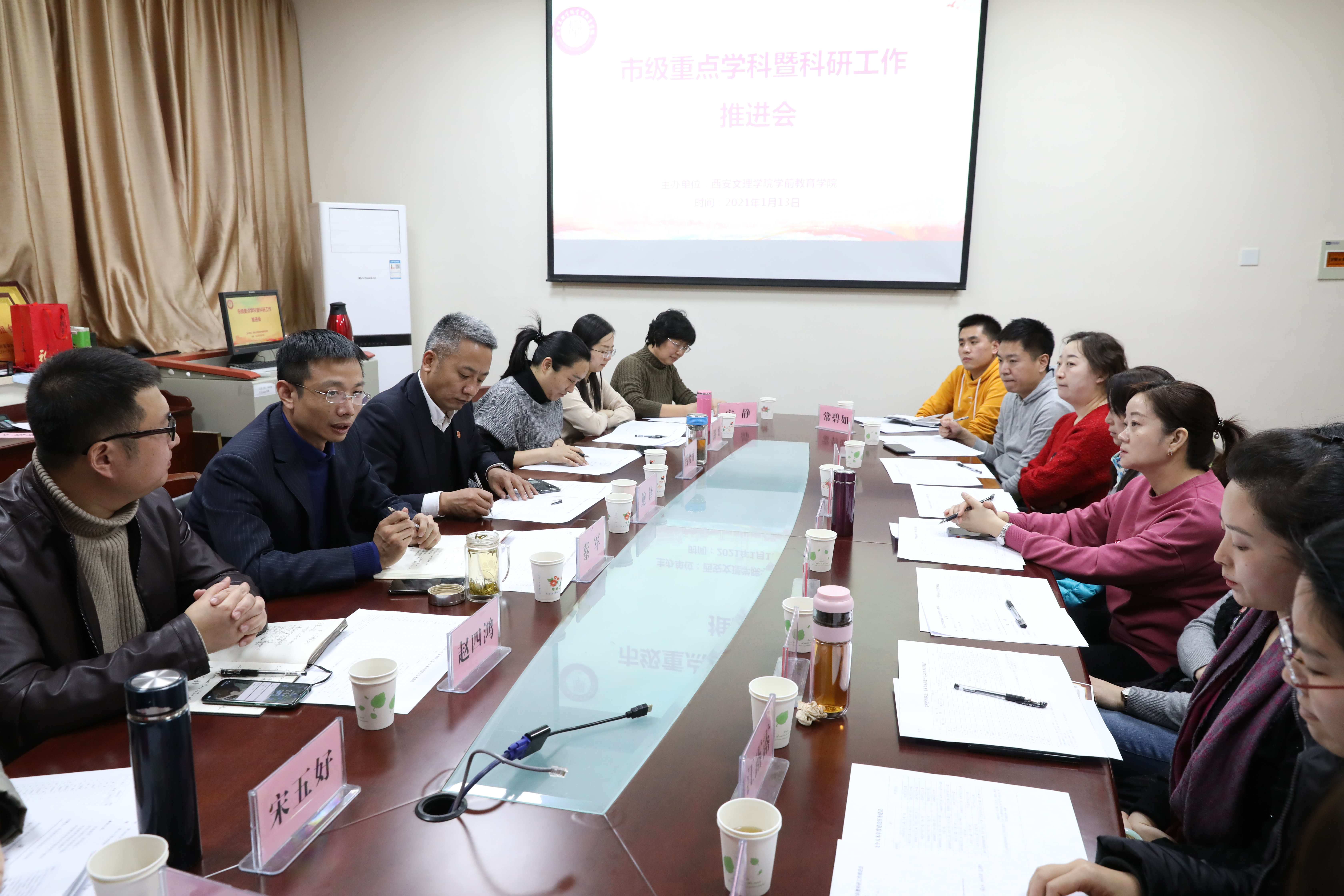 1月13日下午,学前教育学院召开市级重点学科暨科研工作推进会,校党委委员、宣传部部长、科研处处长鲍锋,学位与研究生处副处长钱晓萍及学前教育学院学科建设骨干教师团队教师19人参加了会议。 赵四鸿副院长对标申硕...