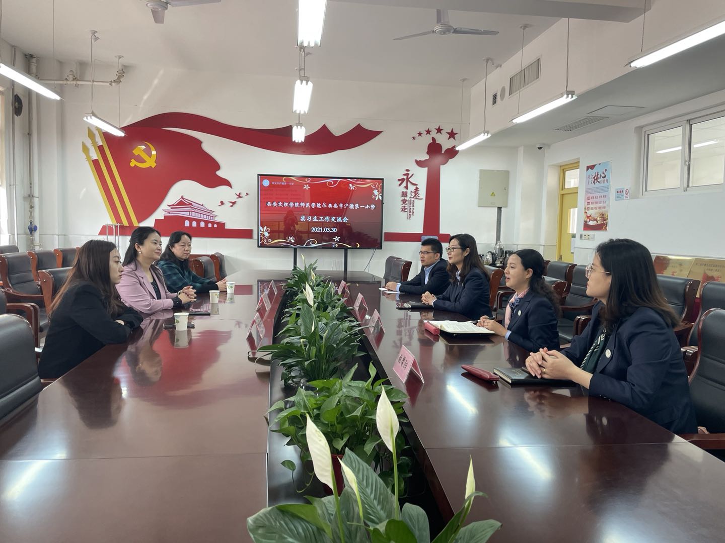 为积极推进毕业生就业工作,3月30日,师范学院党总支书记曹莹、组织员兼党总支副书记姚君波、辅导员刘昱彤等前往浐灞一小、浐灞三小以及未央区教育局洽谈毕业生就业工作。 在浐灞一小,校长付睿带领大家参观了校园,...