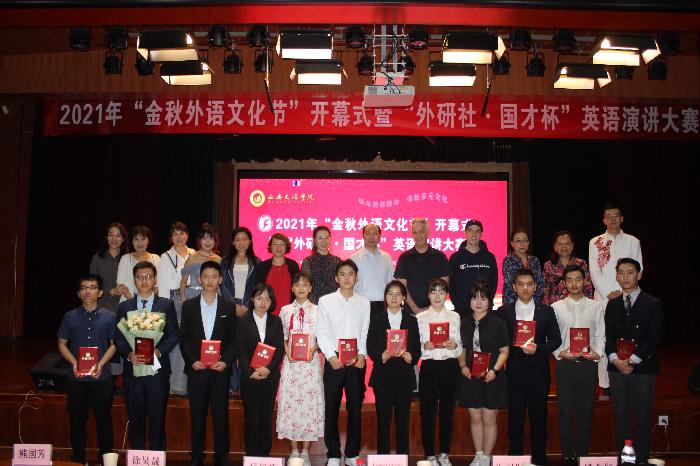 9月29日,ac米兰官方网站2021年“金秋外语文化节”开幕式暨“外研社•国才杯”英语演讲大赛在明德楼负一层演播厅举办。ac米兰官网副校长韩权、学生处处长郑旻、团委书记乔新、宣传部副部长魏娟辉、创新创业中心主任李浩、各二...