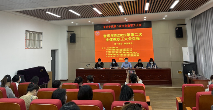 4月20日下午,音乐学院召开本学期第二次全体教职工大会,党总支书记乔新主持会议。 会议集中学习了贯彻中央八项规定精神、纠正“四风”专题资料。会议强调,全体教职工要准确把握自身职责使命,心怀“国之大者”,引...