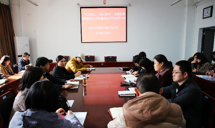 根据市委和学校部署安排,历史文化旅游学院教工党支部于12月4日下午召开“不忘初心、牢记使命”主题教育专题组织生活会暨党员民主评议会。会议由教工党支部书记任颖主持,全体党员及部分群众参加。 会议分为两个阶段...
