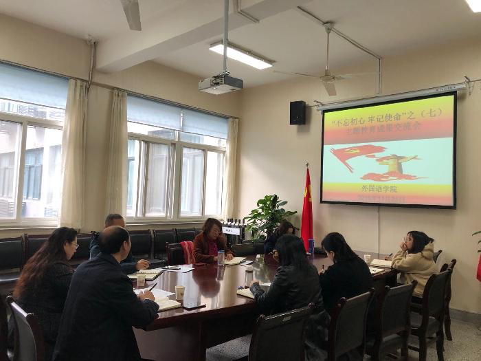 11月25日下午,按照学校“不忘初心、牢记使命”主题教育工作安排,外国语学院领导班子召开“不忘初心、牢记使命”主题教育交流会。学院领导班子成员;办公室、学工办主任参加了会议。会议由党总支书记王克盈主持。 会...