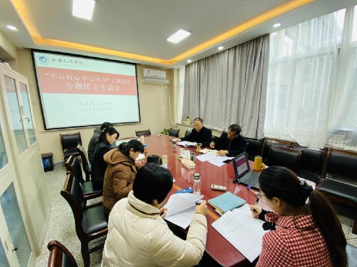 根据市委和学校部署安排,历史文化旅游学院教工党支部于12月4日下午召开“不忘初心、牢记使命”主题教育专题组织生活会暨党员民主评议会。会议由教工党支部书记任颖主持,全体党员及部分群众参加。 会议分为两个阶段...