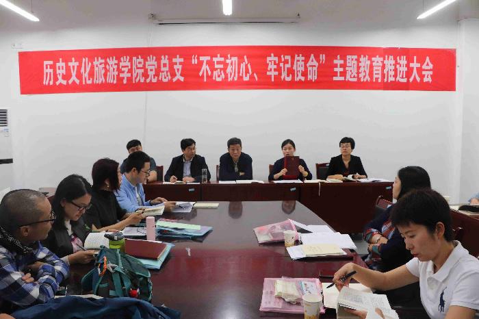 9月18日下午,历史文化旅游学院召开“不忘初心、牢记使命”主题教育推进大会。学校“不忘初心、牢记使命”主题教育第五巡回指导组副组长韩军,学院领导班子成员、党总支委员会委员、全院教师和学生党员参加了会议,学...